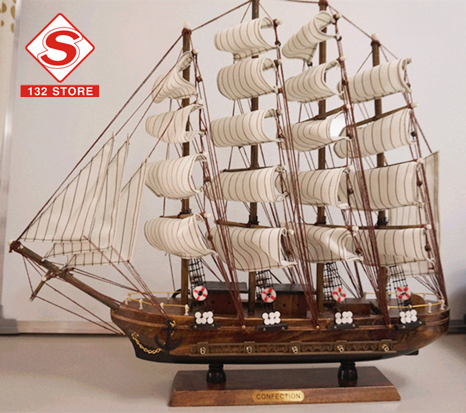 地中海式手工木製工藝品帆船(48X10X45CM)