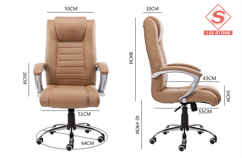 商品規格 尺寸: 見下圖 組裝難度: 簡單 坐面材質: 皮藝 是否可升降: 是 是否可旋轉: 是 是否支持人體工程學: 是 凳腳材質: 鋼制腳 顏色: 粉紅色、卡其色、黑色、啡色