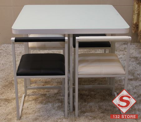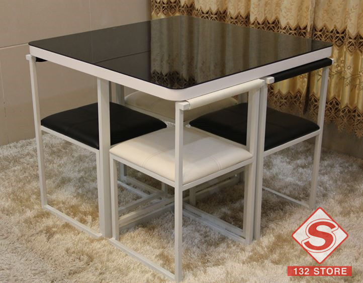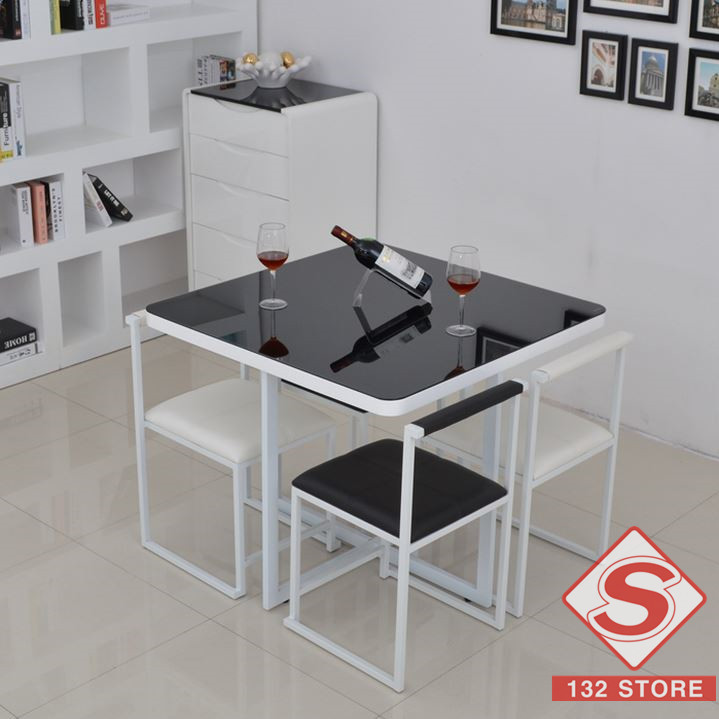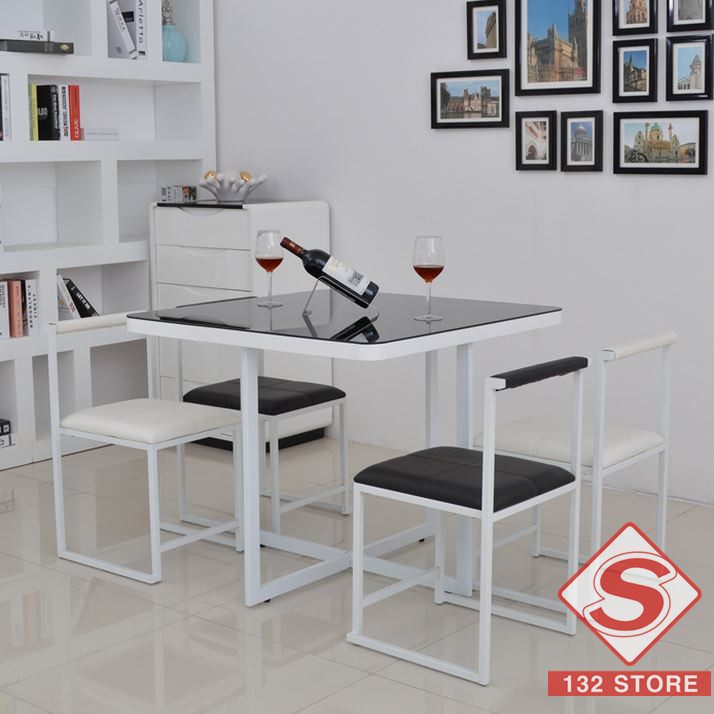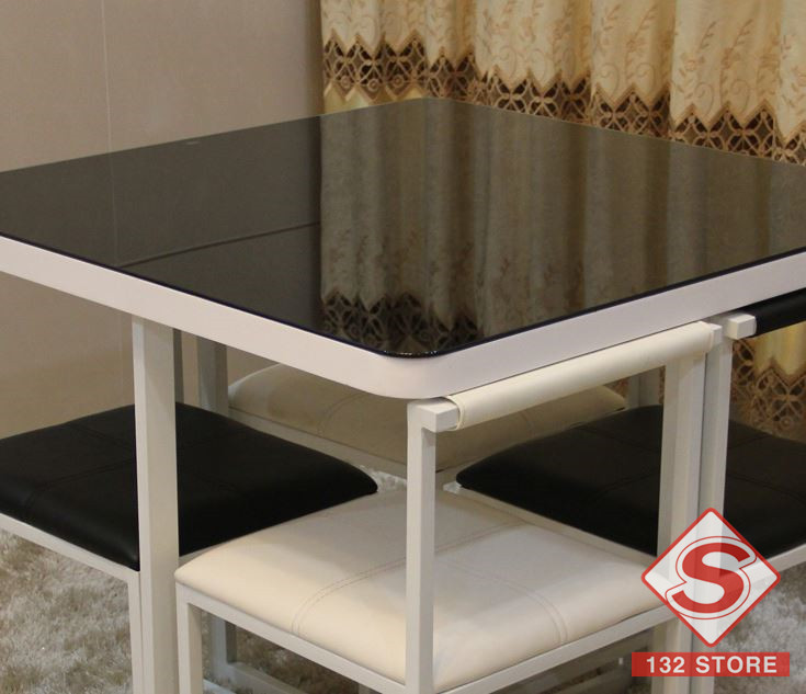 簡約鋼化玻璃餐台餐凳組合