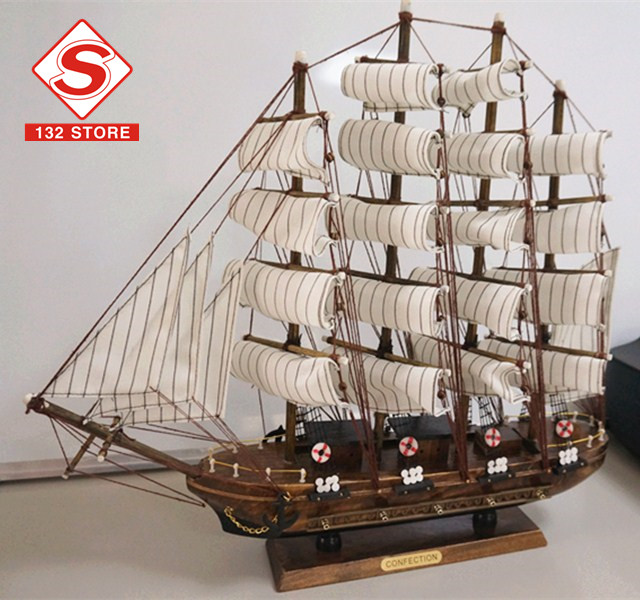 地中海式手工木製工藝品帆船(48X10X45CM)